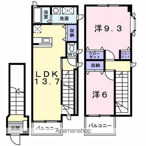 | 間取り詳細 | LDK(13.7帖)、洋室(9.3帖)、洋室(6帖) | ||