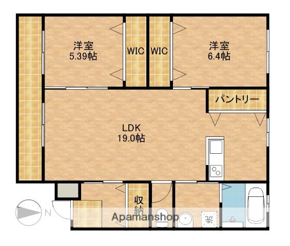 | 間取り詳細 | 洋室(6.4帖)、洋室(5.3帖)、LDK(19帖) | ||
