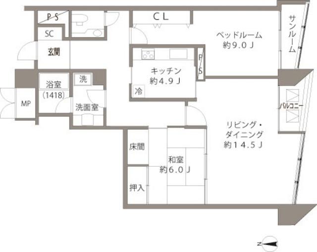 | 間取り詳細 | LD(14.5帖)、K(4.9帖)、洋室(9帖)、和室(6帖) | ||