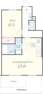 | 間取り詳細 | LDK(13帖)、洋室(6.1帖) | ||