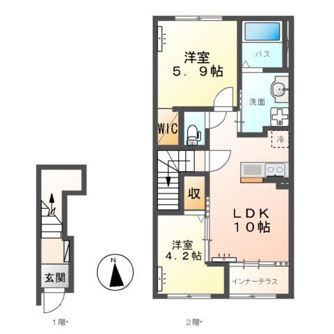| 間取り詳細 | LDK(10帖)、洋室(4.2帖)、洋室(5.9帖) | ||