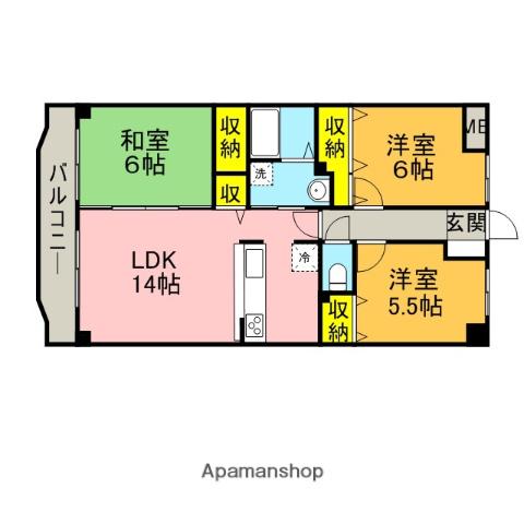 | 間取り詳細 | LDK(14帖)、洋室(6帖)、和室(6帖)、洋室(5.5帖) | ||