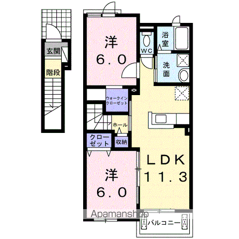 アパート メルベーユB棟(2LDK/2階) | |||||||
