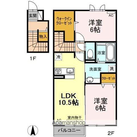 | 間取り詳細 | LDK(10.5帖)、洋室(6帖)、洋室(6帖) | ||