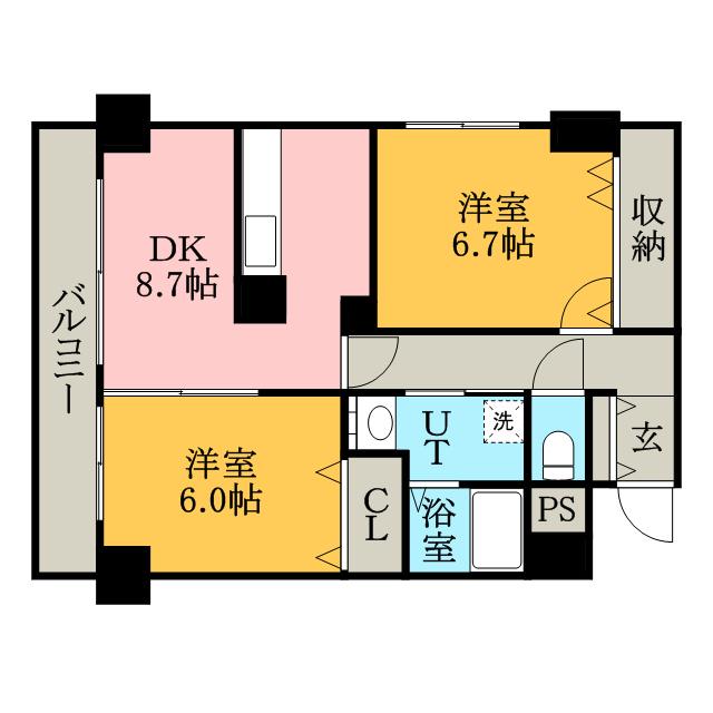 グレースガーデン大通の賃貸物件情報(2DK/9階)