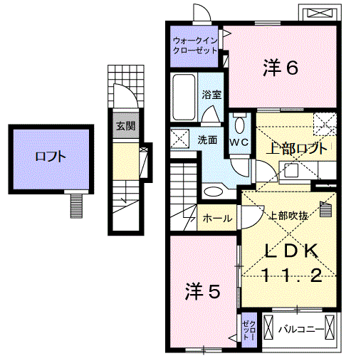 | 設備 | バス・トイレ別、テレビドアホン、浴室乾燥機、ウォークインクローゼット、追い焚き、温水洗浄便座、バルコニー、フローリング、ロフトあり、BSアンテナ、シャワー、洗濯機:室内 | ||
