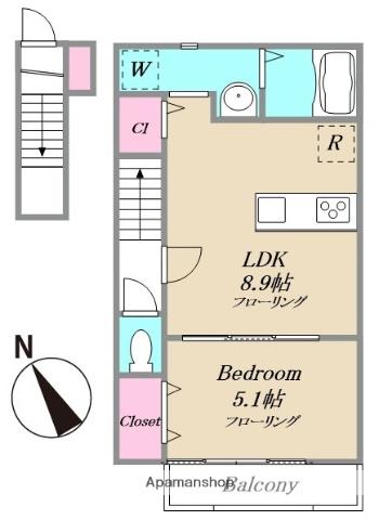 | 間取り詳細 | 洋室(5.1帖)、LDK(8.9帖) | ||