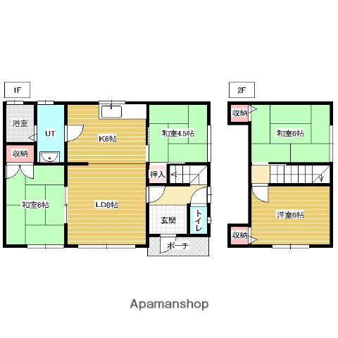 | 間取り詳細 | LD(8帖)、K(6帖)、和室(6帖)、和室(4.5帖)、洋室(6帖)、和室(6帖) | ||