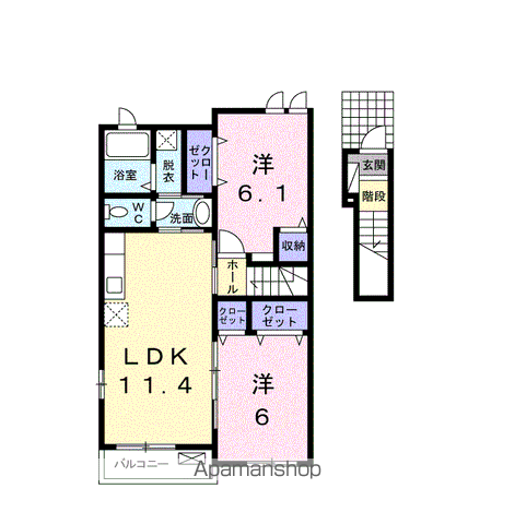 | 間取り詳細 | LDK(11.4帖)、洋室(6.1帖)、洋室(6帖) | ||