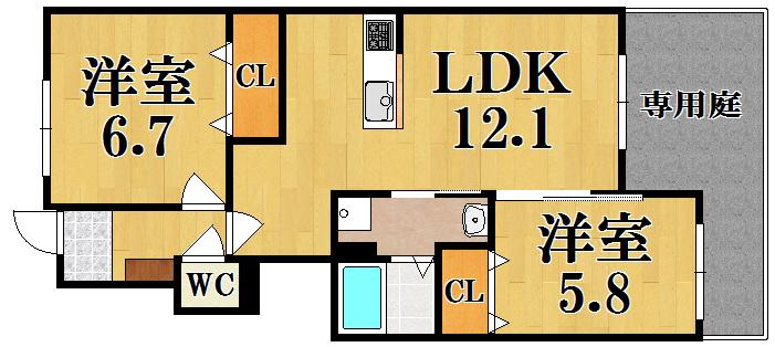 | 間取り詳細 | LDK(12.1帖)、洋室(6.7帖)、洋室(5.8帖) | ||