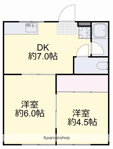 | 間取り詳細 | 洋室(6帖)、洋室(4.5帖)、DK(7帖) | ||