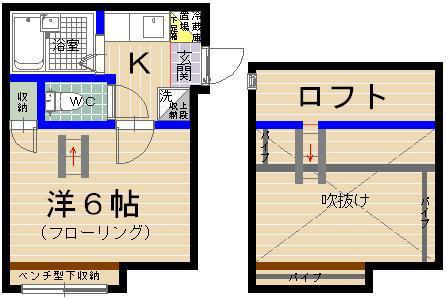 | 設備 | バス・トイレ別、テレビドアホン、インターネット対応、エアコン、バルコニー、フローリング、ロフトあり、2口コンロ、CATV、BSアンテナ、インターネット使用料無料、洗濯機:室内 | ||