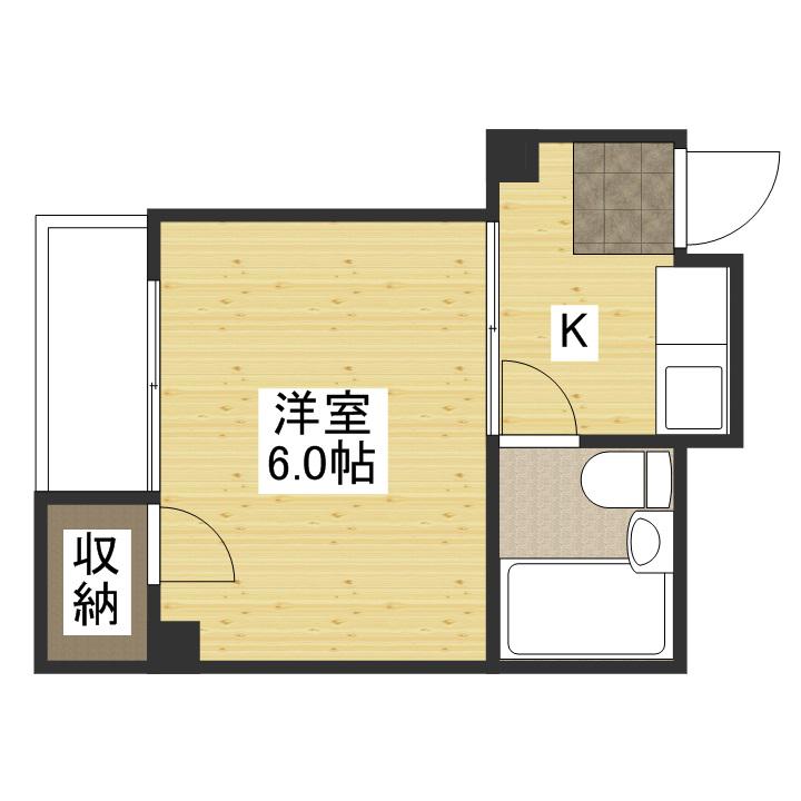 | 間取り詳細 | K(1帖)、洋室(6帖) | ||