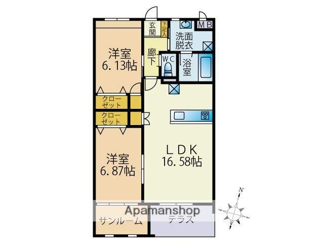 | 間取り詳細 | LDK(16.6帖)、洋室(6.9帖)、洋室(6.2帖) | ||