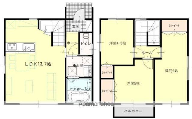 | 間取り詳細 | LDK(13.7帖)、洋室(4.5帖)、洋室(5帖)、洋室(6帖) | ||