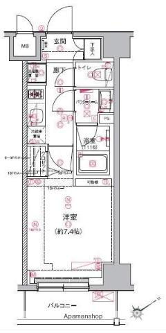 | 間取り | 1K | 専有面積 | 25.46m2 |