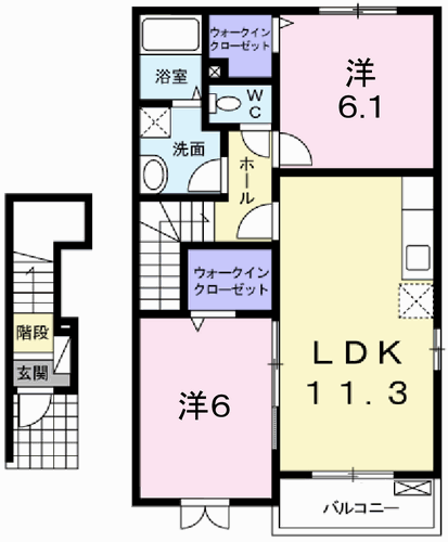 | 間取り詳細 | LDK(11.3帖)、洋室(6帖)、洋室(6.1帖) | ||