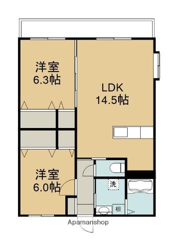 | 間取り詳細 | LDK(14.5帖)、洋室(6.3帖)、洋室(6帖) | ||