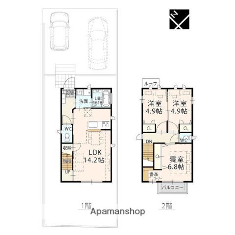 | 間取り詳細 | LDK(14.2帖)、洋室(4.9帖)、洋室(4.9帖)、洋室(6.8帖) | ||