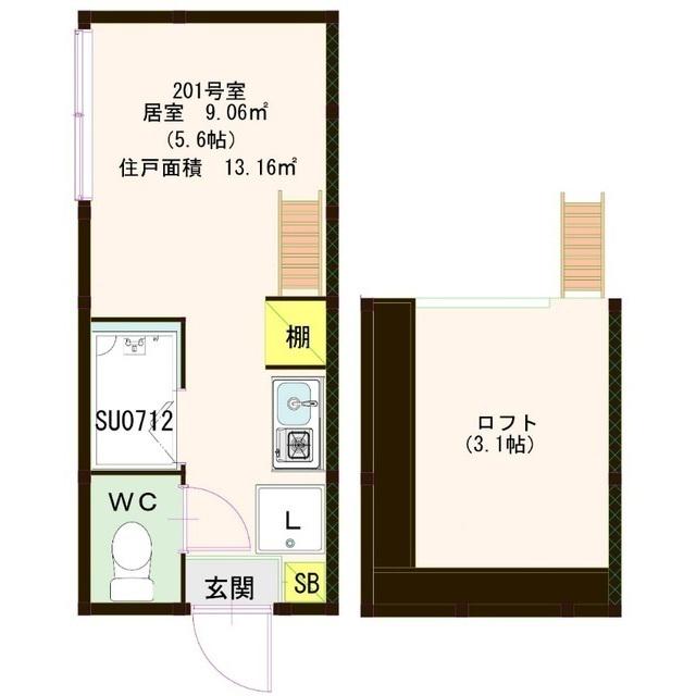 | 間取り | ワンルーム | 専有面積 | 13.16m2 |