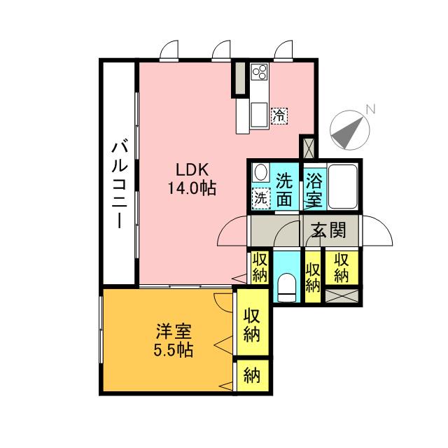 | 間取り詳細 | LDK(14帖)、洋室(5.5帖) | ||
