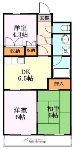 | 間取り詳細 | 洋室(6帖)、和室(6帖)、洋室(4.3帖)、DK(6.5帖) | ||