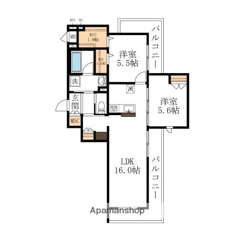 | 間取り詳細 | LDK(16帖)、洋室(5.5帖)、洋室(5.6帖) | ||