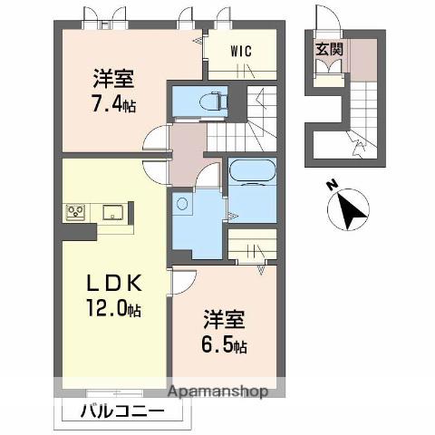 | 間取り詳細 | 洋室(7.4帖)、洋室(6.5帖)、LDK(12帖) | ||