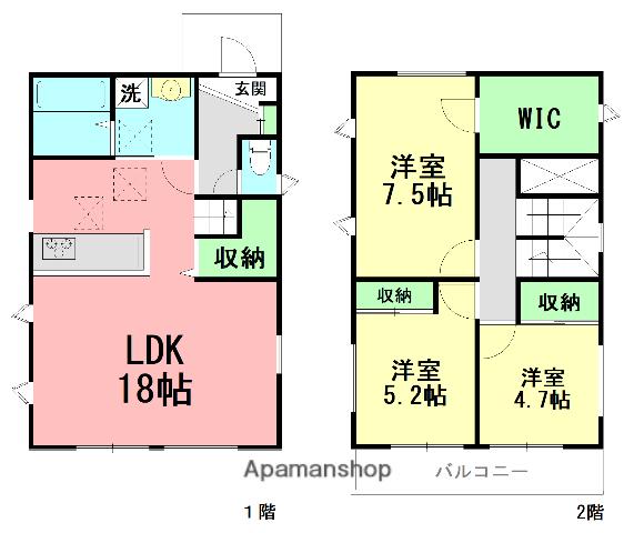 | 間取り詳細 | LDK(18帖)、洋室(7.5帖)、洋室(5.2帖)、洋室(4.7帖) | ||