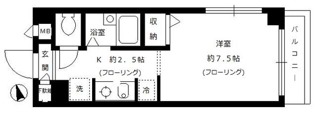 | 間取り詳細 | 洋室(7.5帖)、K(2.5帖) | ||