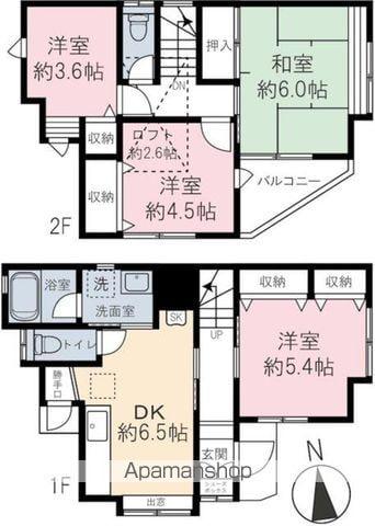 | 間取り詳細 | DK(6.5帖)、洋室(5.4帖)、洋室(4.5帖)、洋室(3.6帖)、和室(6帖) | ||