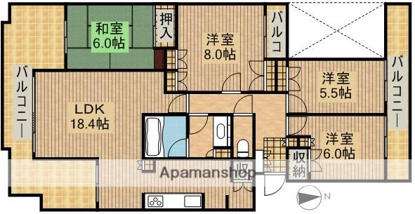 | 間取り詳細 | 洋室(8帖)、洋室(4.5帖)、洋室(5.5帖)、和室(6帖)、LDK(18.5帖) | ||
