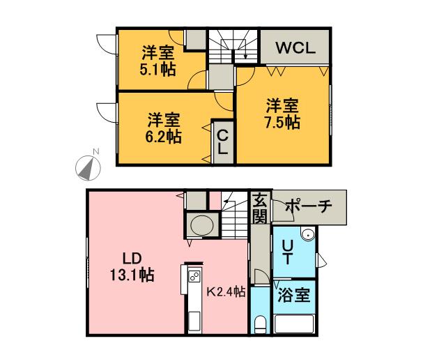 | 間取り詳細 | LD(13.1帖)、K(2.4帖)、洋室(7.5帖)、洋室(6.2帖)、洋室(5.1帖) | ||
