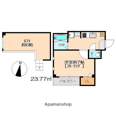 | 間取り | 1K | 専有面積 | 23.77m2 |