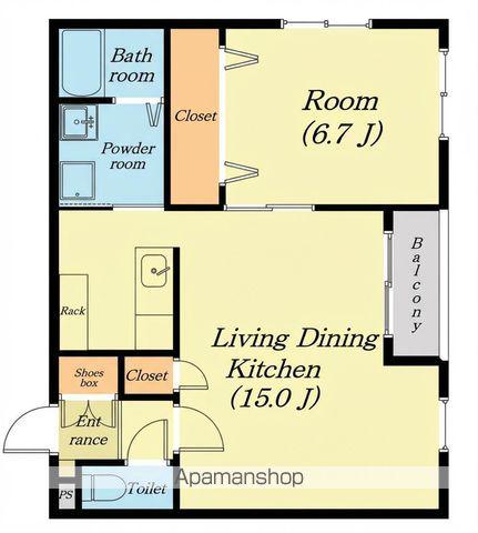 | 間取り詳細 | LDK(15帖)、洋室(6.7帖) | ||