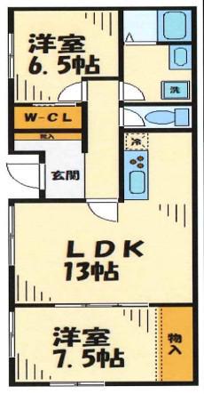 | 間取り詳細 | LDK(13帖)、洋室(7.5帖)、洋室(6.5帖) | ||