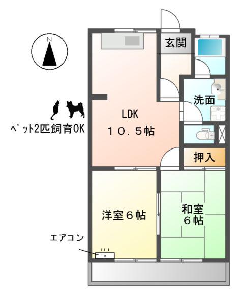 | 間取り詳細 | LDK(10.5帖)、和室(6帖)、洋室(6帖) | ||