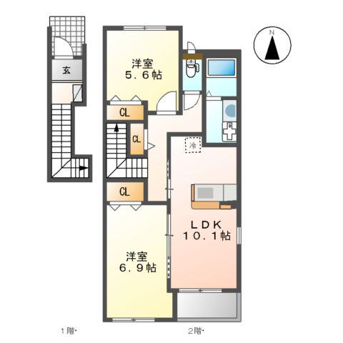 | 間取り詳細 | LDK(10.1帖)、洋室(6.9帖)、洋室(5.6帖) | ||