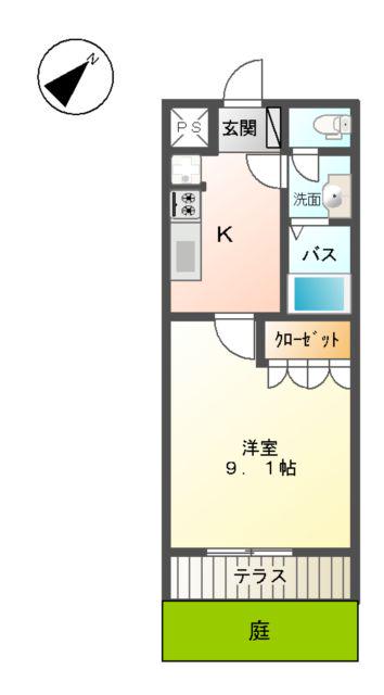 | 間取り詳細 | K(2.5帖)、洋室(9.1帖) | ||