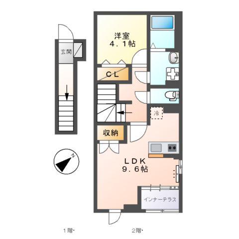 | 間取り詳細 | LDK(9.6帖)、洋室(4.1帖) | ||