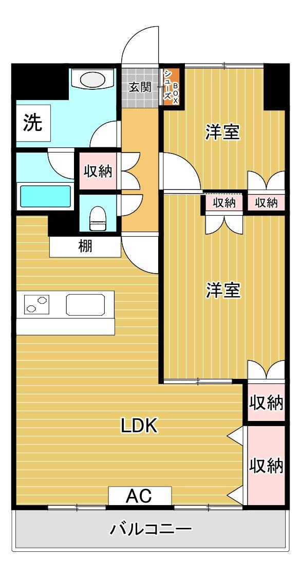| 間取り | 2LDK | 専有面積 | 58m2 |
