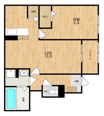| 間取り詳細 | LDK(13.5帖)、洋室(6.4帖) | ||