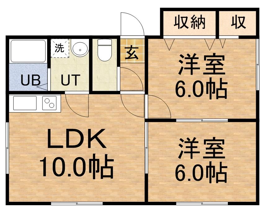 | 間取り詳細 | LDK(10帖)、洋室(6帖)、洋室(6帖) | ||