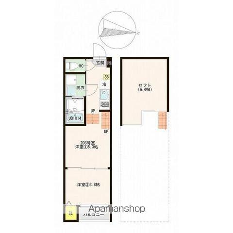 | 設備 | バス・トイレ別、テレビドアホン、宅配ボックス、浴室乾燥機、インターネット対応、システムキッチン、温水洗浄便座、バルコニー、フローリング、ロフトあり、コンロ:ガス、デザイナーズ、CSアンテナ、BSアンテナ、シャワー、給湯、冷房、洗濯機:室内 | ||