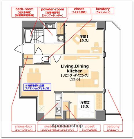 | 周辺環境 | その他 スーパー玉出日本橋店 徒歩8分(603m) その他 ミニストップ 徒歩8分(567m) その他 ライフ下寺店 徒歩8分(564m) その他 セブンイレブン 徒歩10分(734m) その他 なんばウォーク 徒歩10分(762m) その他 食品館アプロ 夕陽丘店 徒歩11分(813m) その他 なんばcity 徒歩11分(866m) その他 セブンイレブン 徒歩12分(893m) | ||
