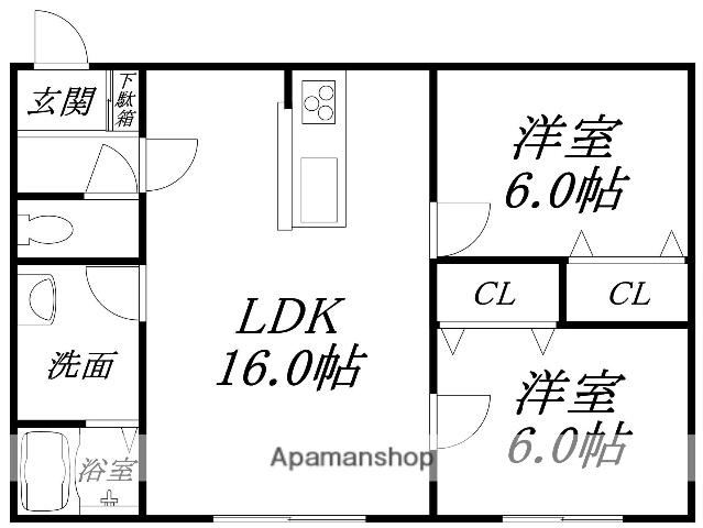 | 間取り詳細 | LDK(16帖)、洋室(6帖)、洋室(6帖) | ||