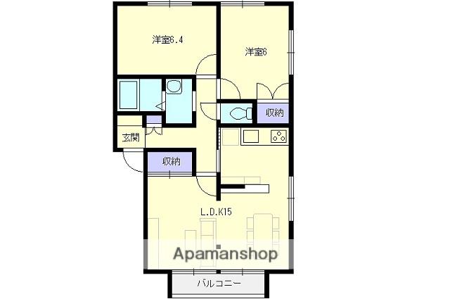 | 間取り詳細 | LDK(15帖)、洋室(6.4帖)、洋室(6帖) | ||