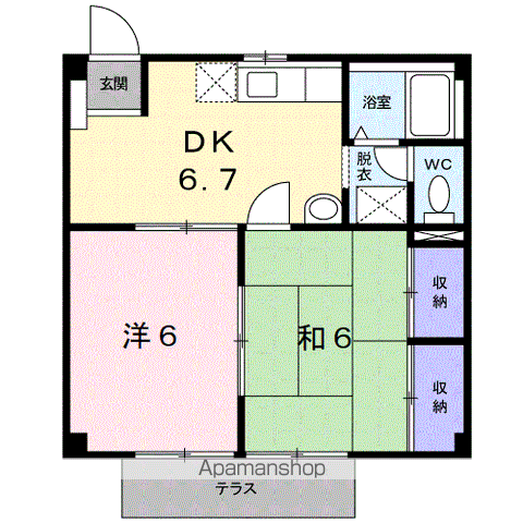 アパート エリシオン日高 G棟(2DK/1階) | |||||||