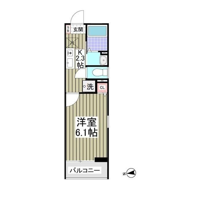 | 間取り詳細 | K(2.3帖)、洋室(6.1帖) | ||