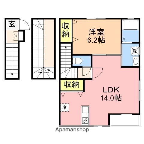 | 間取り詳細 | LDK(14帖)、洋室(6.2帖) | ||
